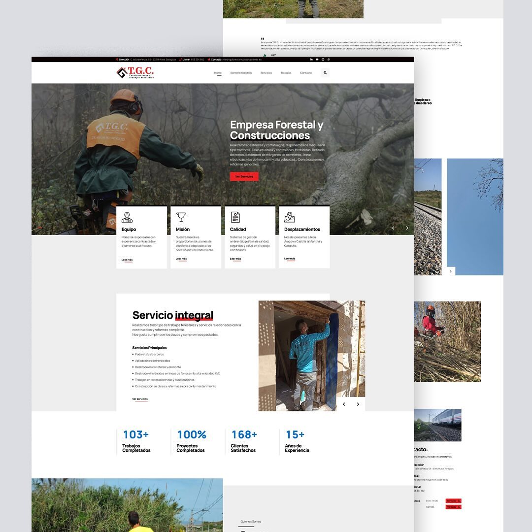 El diseño de la nueva página web de T.G.C., una empresa especializada en trabajos forestales y poda en altura. El enfoque del sitio debe transmitir profesionalismo, seguridad, experiencia en trabajos verticales y compromiso con el medio ambiente.